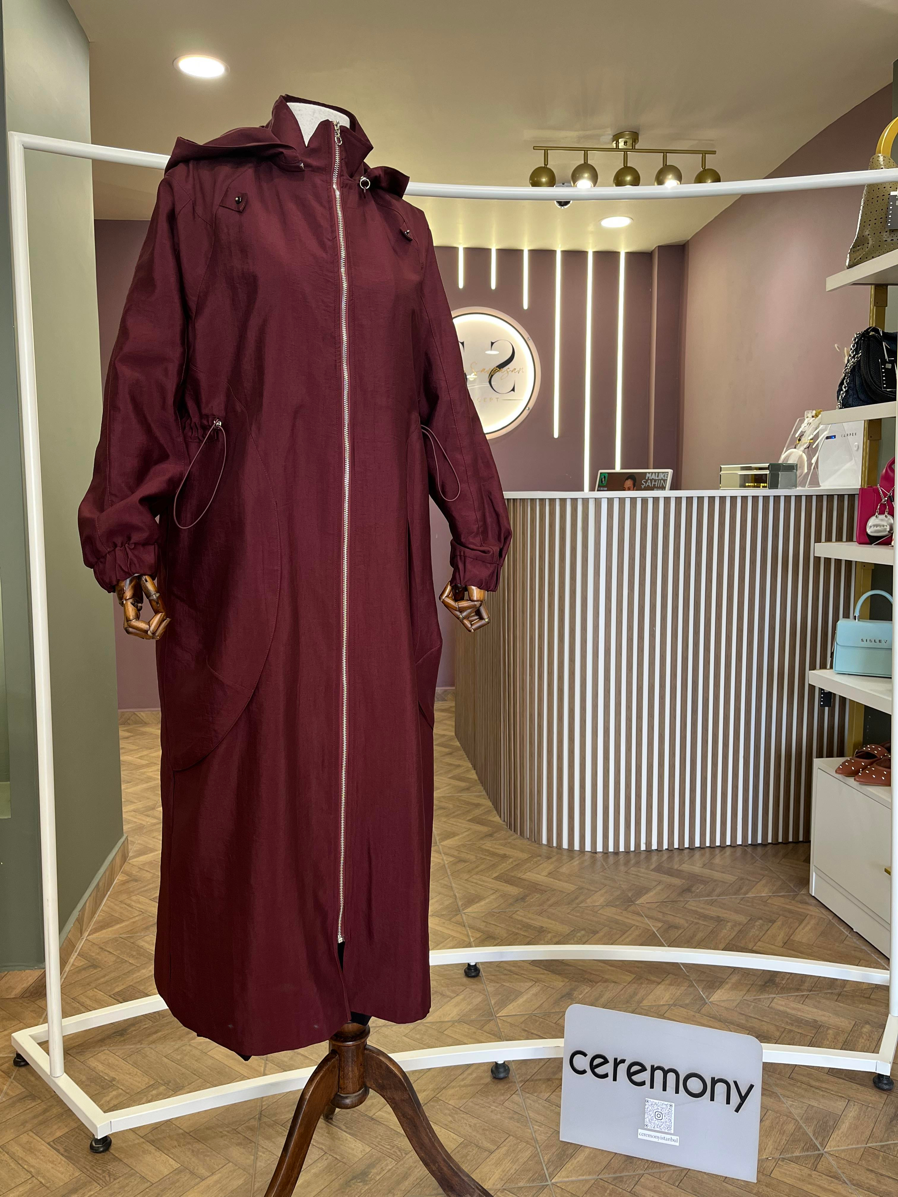 YANLARI ALLERLİ KAPÜŞONLU TRENÇKOT