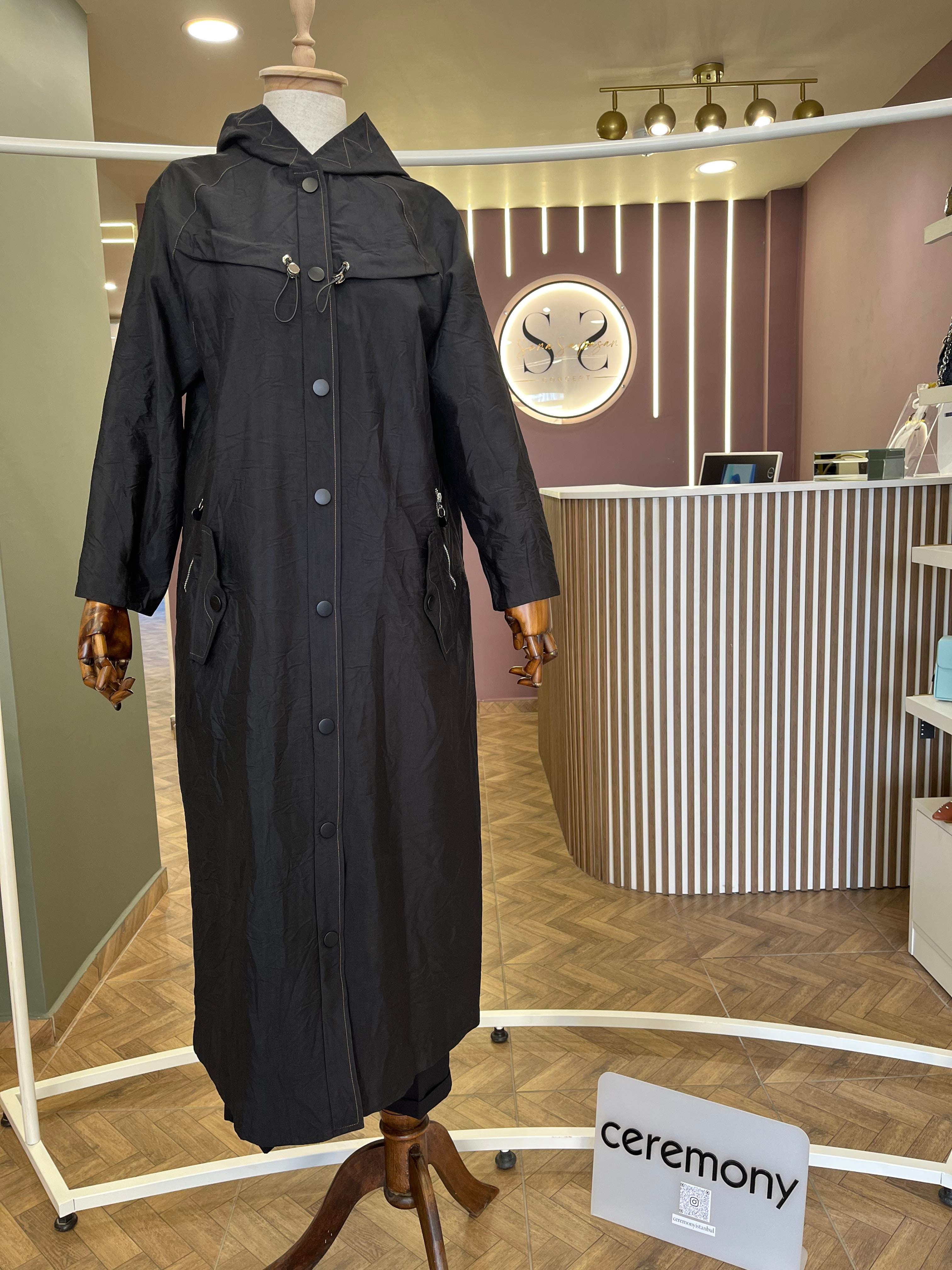 ZİKZAK DİKİŞLİ KAPÜŞONLU TRENÇKOT